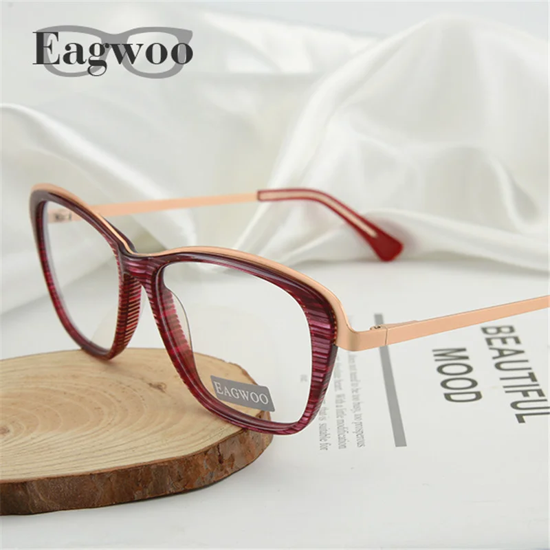 Eagwoo Women Designed Eyeglasses Prescription Optical Frame Lady Spectacle Cat Eye Vintage Style Glasses with Spring Temple 1147